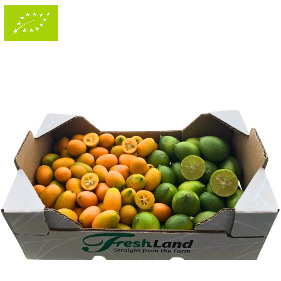 Nämä hedelmät tulevat espanjalaiselta sitrustaikurilta Jose Antoniolta, jolla on juuri nyt juhlittavaa: Jose Antonion kumkvatit ja limkvatit ovat saaneet luomusertifikaattinsa! Olemme ylpeitä saadessamme olla osa viljelijöidemme luomumatkaa – ja että voimme tarjota Jose Antonion upeita hedelmiä. Hänen tilansa toimittaa erilaisia hedelmiä – sekä avokadoja että muita seikkailullisia herkkuja, joten tämä ei ole viimeinen kerta, kun kuulet hänen luomuherkuistaan.