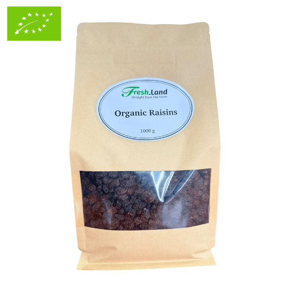 Nämä luomurusinat valmistetaan Thompson Seedless -rypäleistä, jotka aurinkokuivataan, kunnes ne saavat tumman värinsä, karamellimaisen makeutensa ja pehmeän koostumuksensa. Mukana on pieni määrä luomu auringonkukkaöljyä kokkareiden estämiseksi – mutta ei lisättyä sokeria eikä säilöntäaineita.